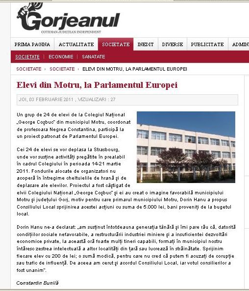 Un articol despre echipa colegiului ce a participat la concursul Euroscola a aparut recent in cotidianul